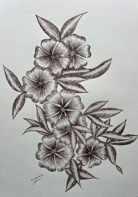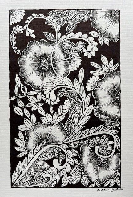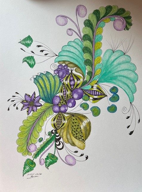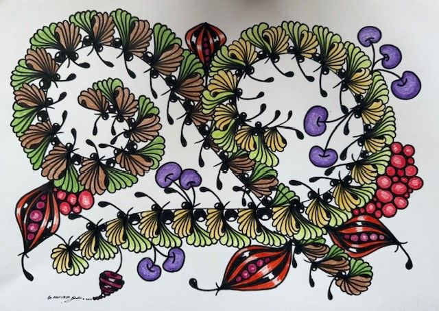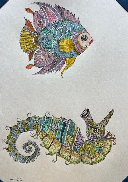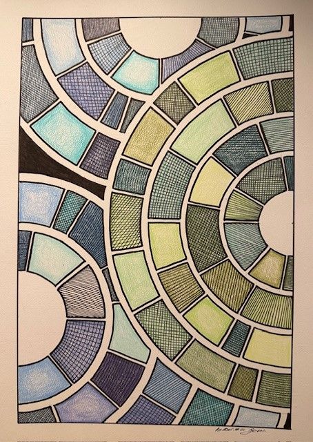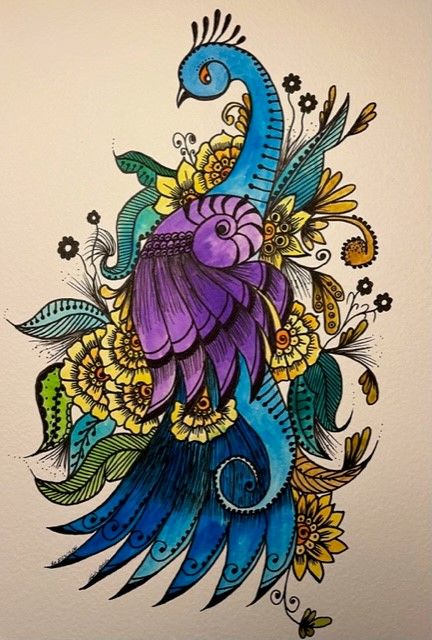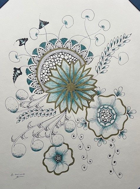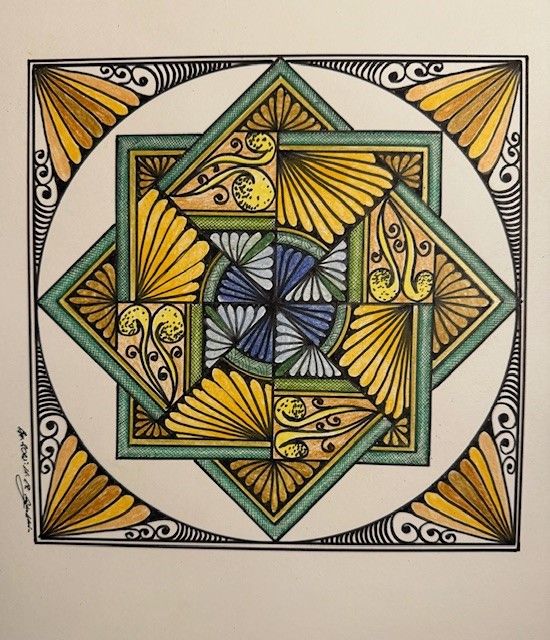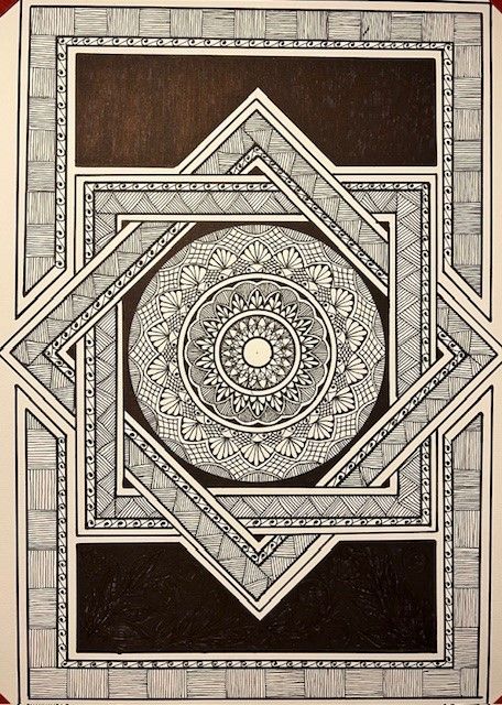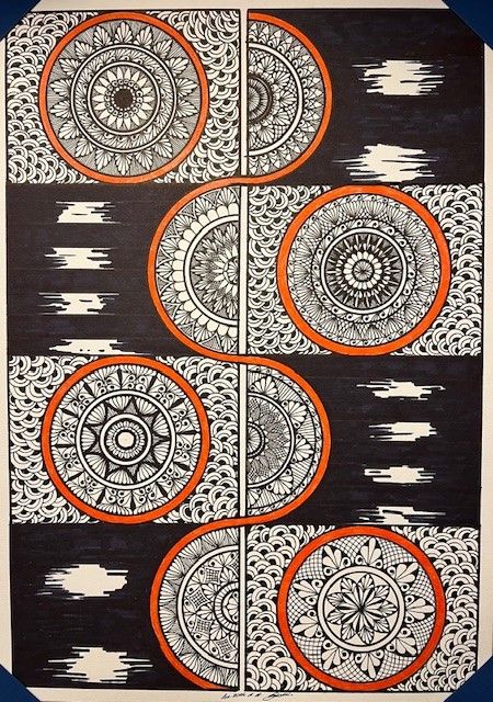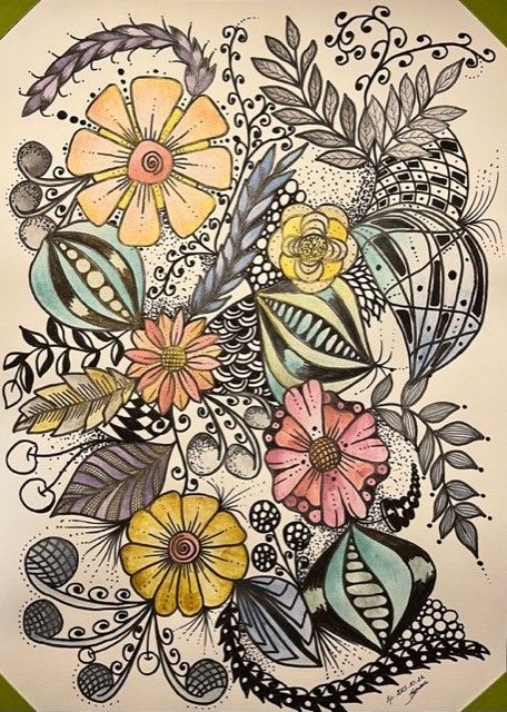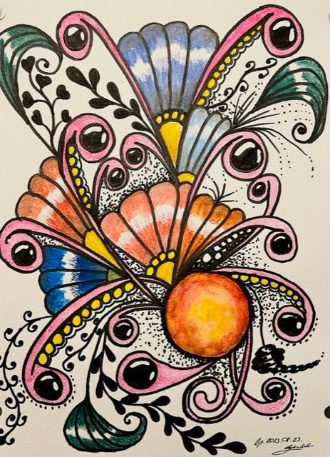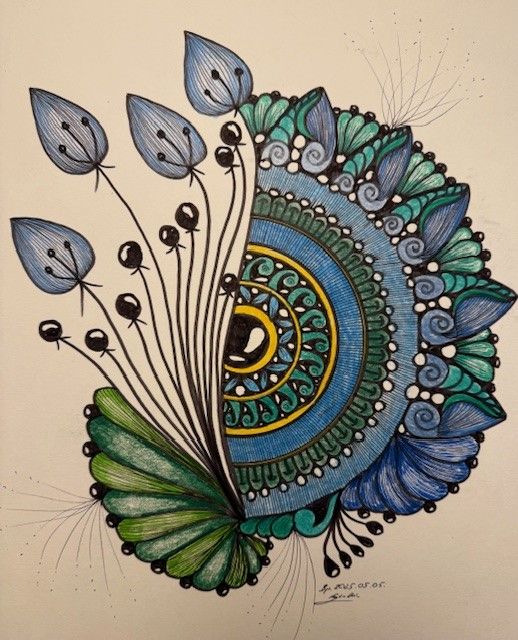 mandala virágokkalméret: A/3anyag: papírtechnika: akvarell ceruza és filctollÁr: 30.000 Ft